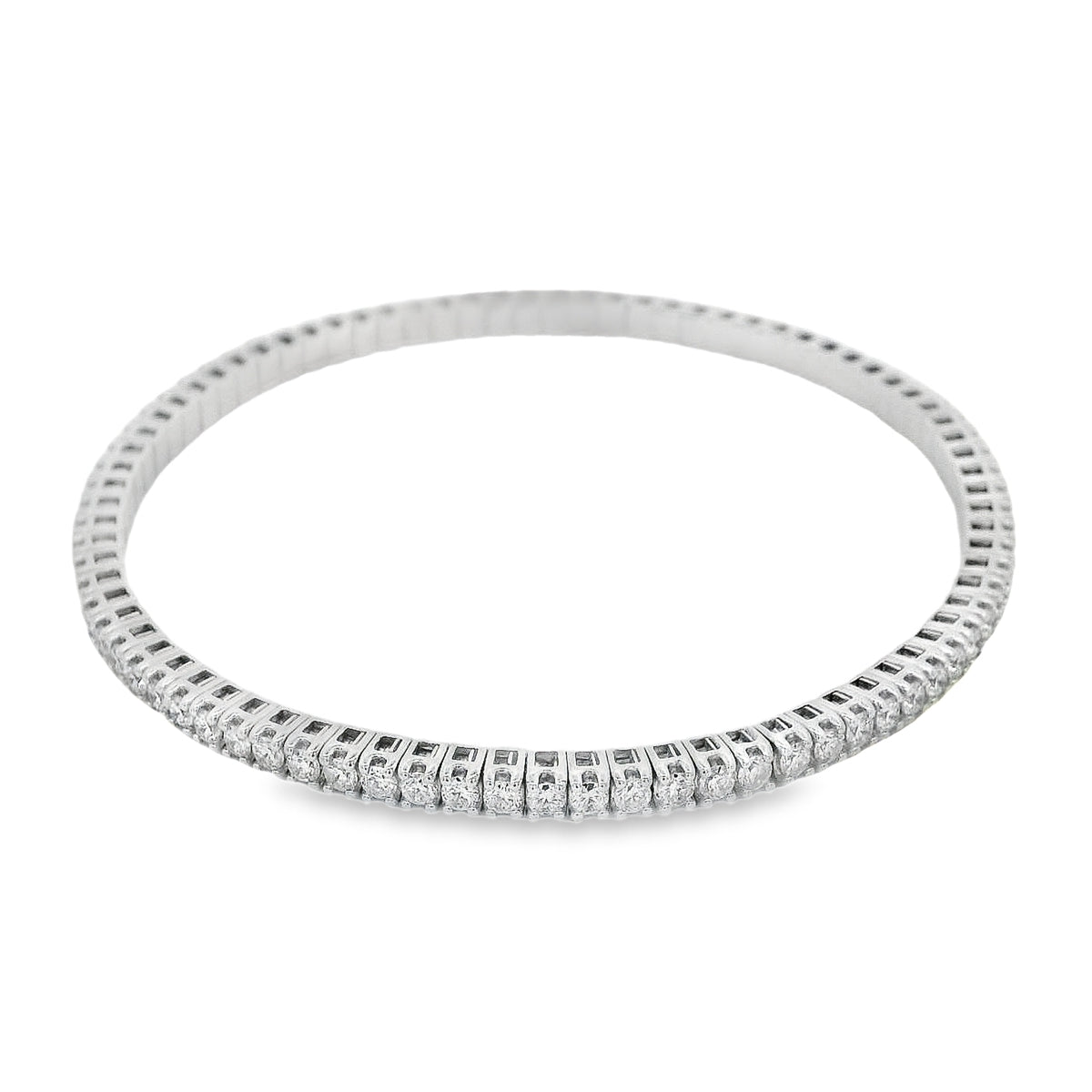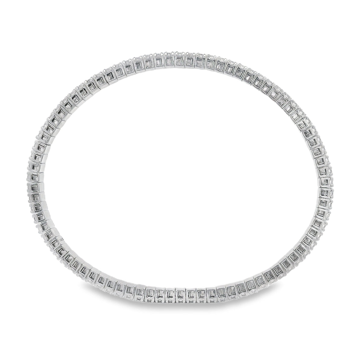 This Beautiful Flexible Bangle Bracelet Is Crafted In 14K White Gold With 4.72 CTW Of Round Brilliant Cut LAB Grown Diamonds.